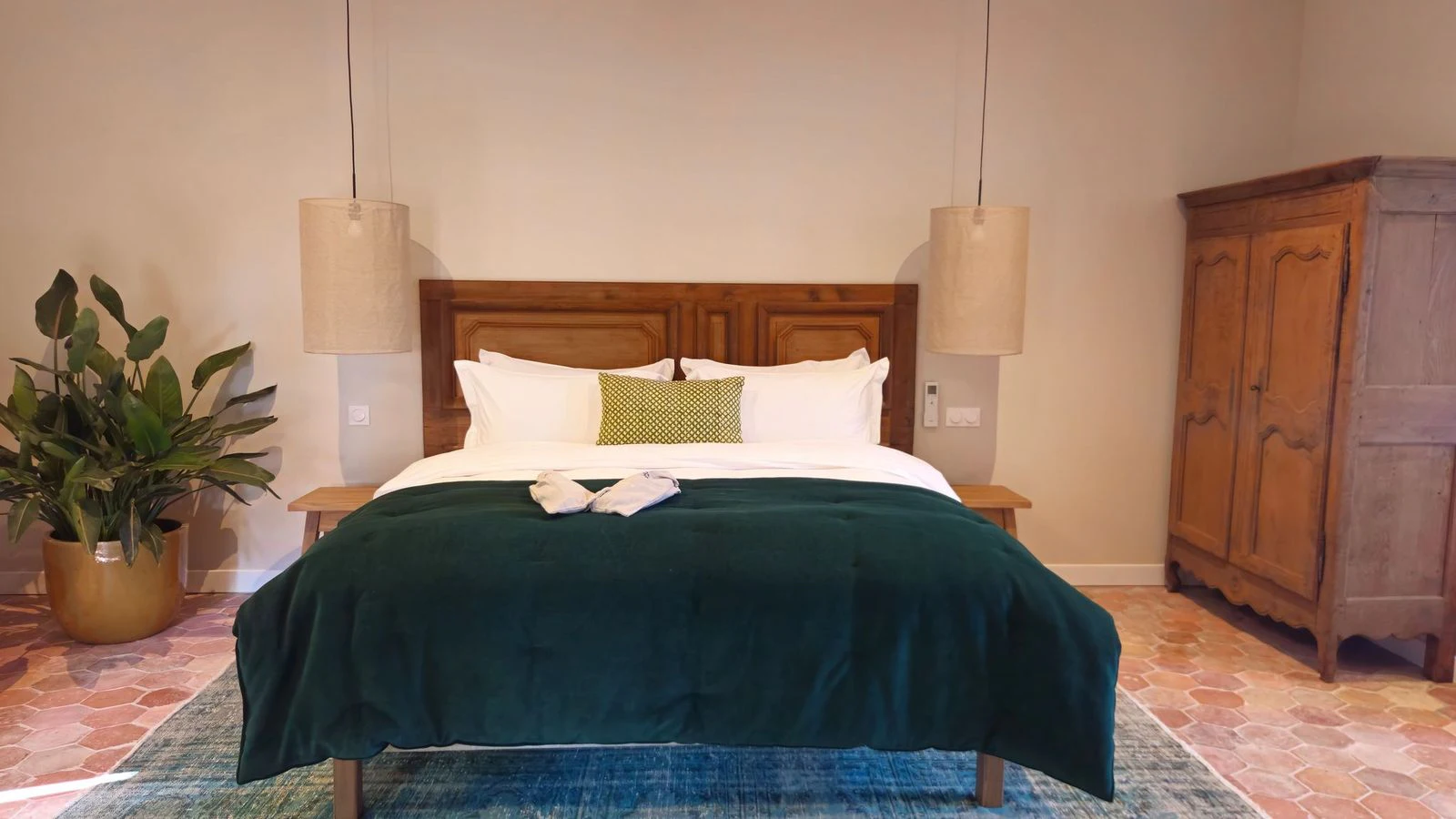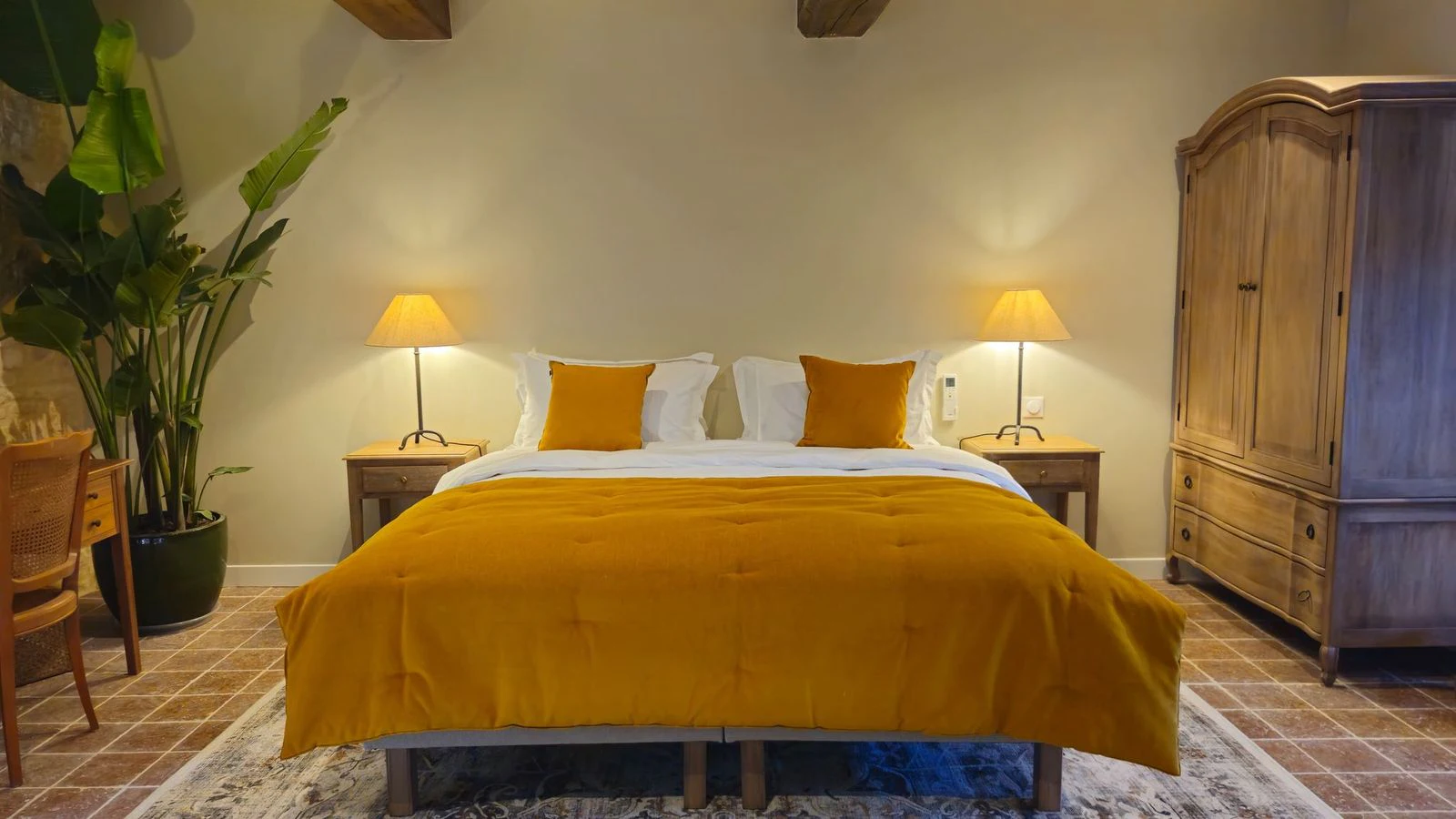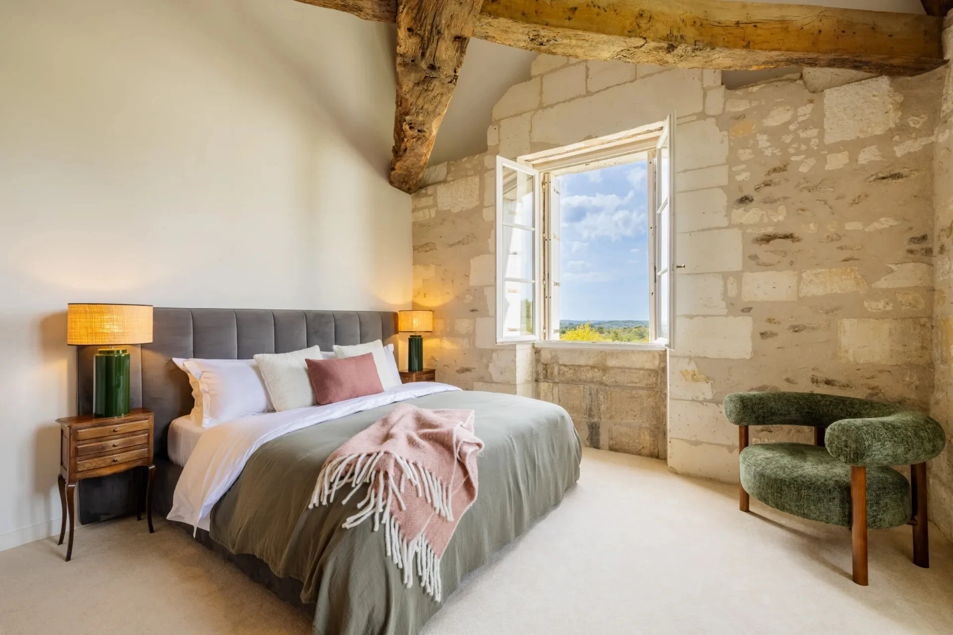 The estate accommodates up to 18 guests across the château and its renovated outbuildings, making it ideal for families, friends, or corporate gatherings. Interiors feature king-size suites, curated antiques, and expansive living spaces. Contemporary amenities include high-speed Wi-Fi, air conditioning, a state-of-the-art audio system, and a private heated pool.
