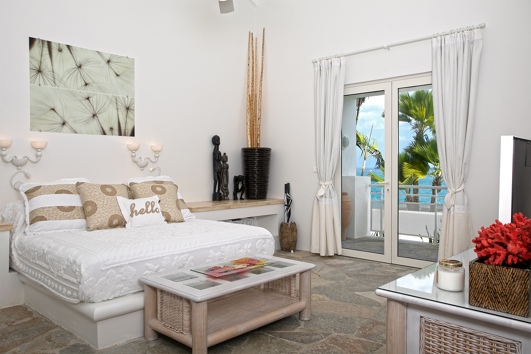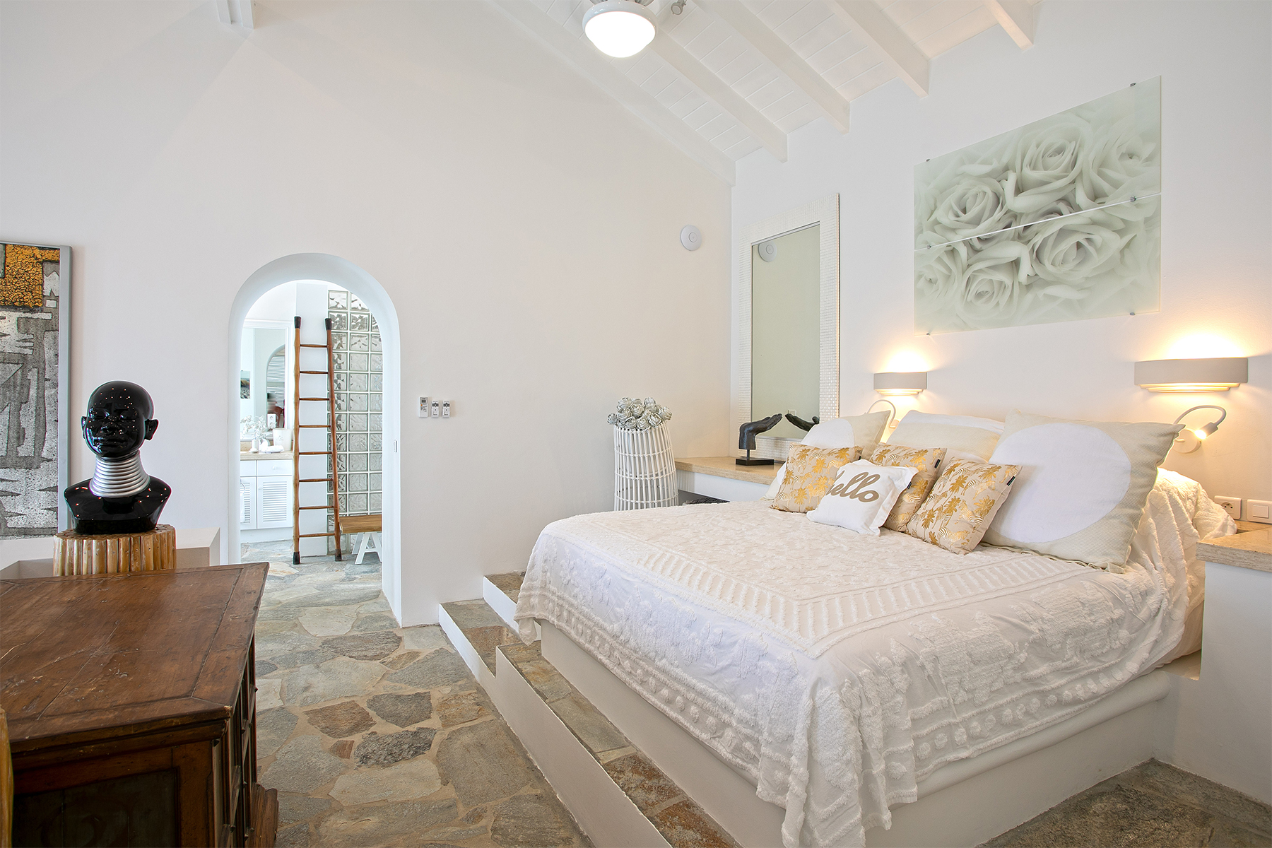 Set along the dramatic cliffs of Baie Rouge, one of St. Martin’s most exclusive beaches, Oasis Azure embodies the pinnacle of oceanfront luxury. Built over three cascading levels that follow the natural slope of the coastline, this sophisticated six-bedroom retreat—featuring three magnificent master suites—offers uninterrupted sea views, Mediterranean-inspired architecture, and two stunning pools, including one at beach level and another infinity-edge pool on the main terrace. With pristine white walls, clean modern lines, and endless panoramic vistas, Oasis Azure delivers an unparalleled beachfront experience where sun, surf, and serenity converge.