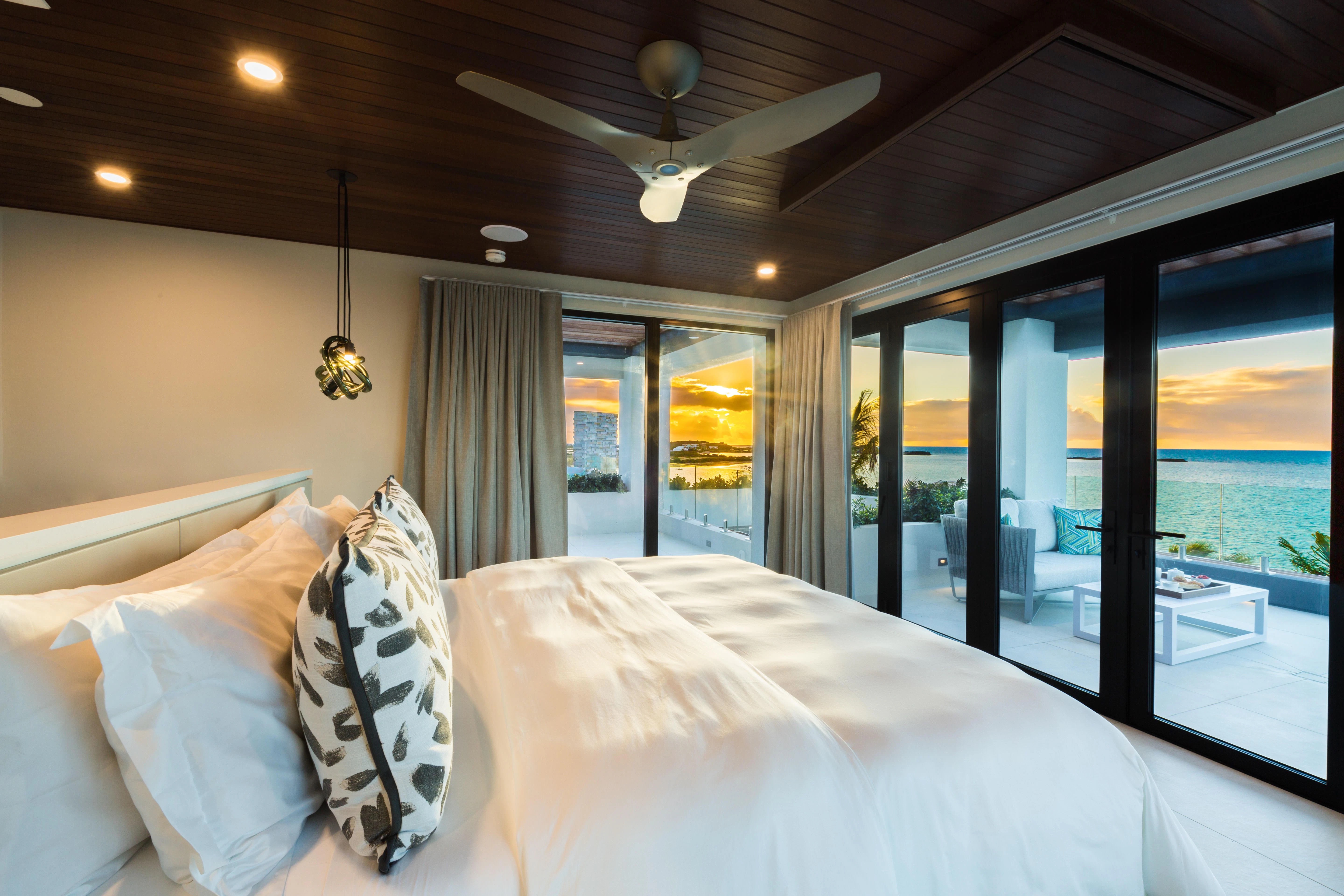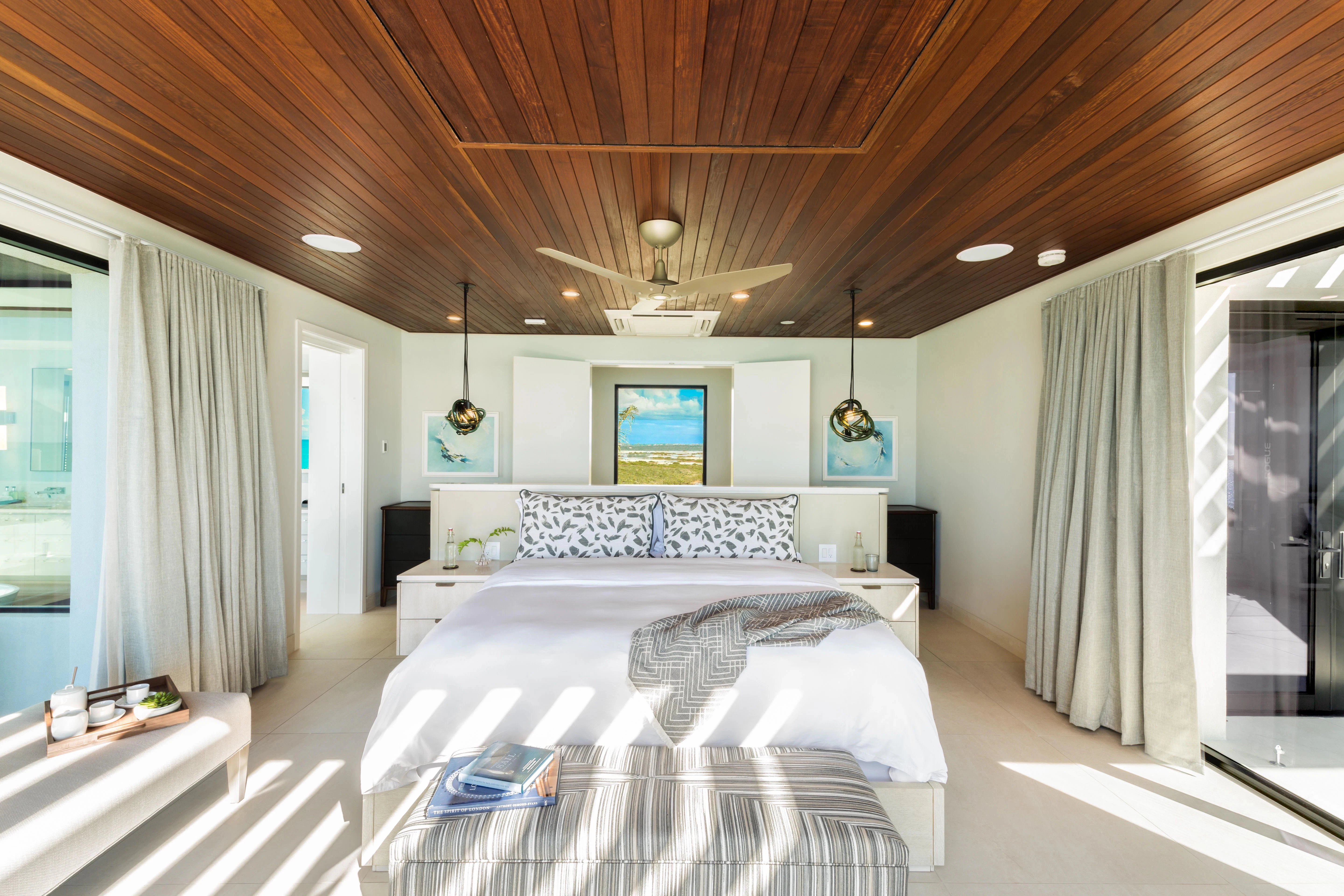 Among the most harmoniously designed oceanfront properties in Turks and Caicos, Villa Wind Chime graces the coveted Turtle Tail coastline, where its strategic southern orientation captures maximum sunlight and cooling sea breezes. This thoughtfully conceived sanctuary, encompassing 9,527 square feet on nearly three-quarters of an acre, draws inspiration from the four elements - earth, fire, water, and air - to create a perfectly balanced retreat.